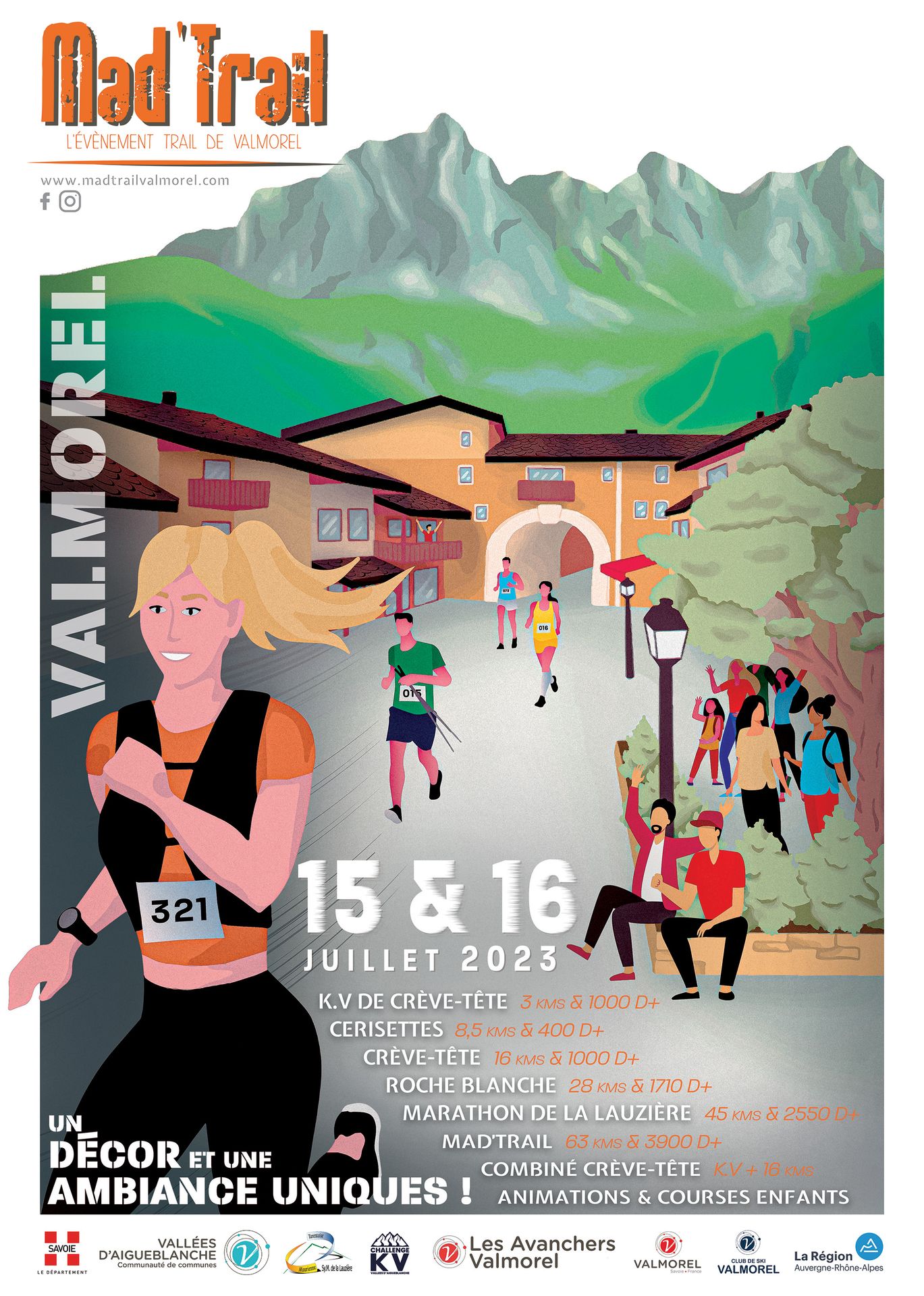 L'illustration pour cette affiche se focus sur la rue principale de Valmorel, avec un rappel des montagnes derrière.